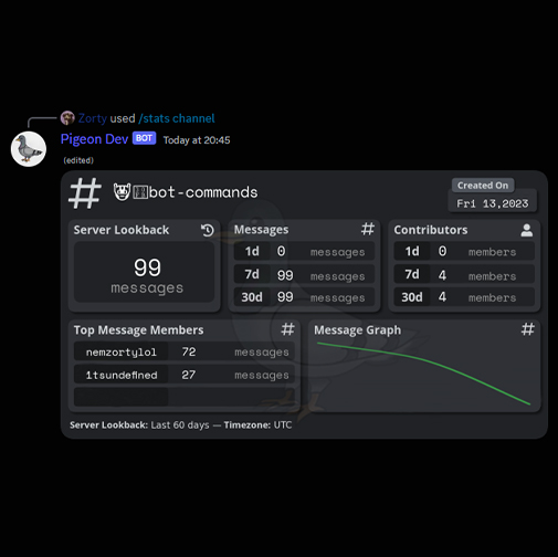 Ever wondered who is most active on a particular channel or server? Curious about the time spent by members in voice chat? Dive into detailed insights with us, where you can explore comprehensive information and even visualize data through helpful charts.